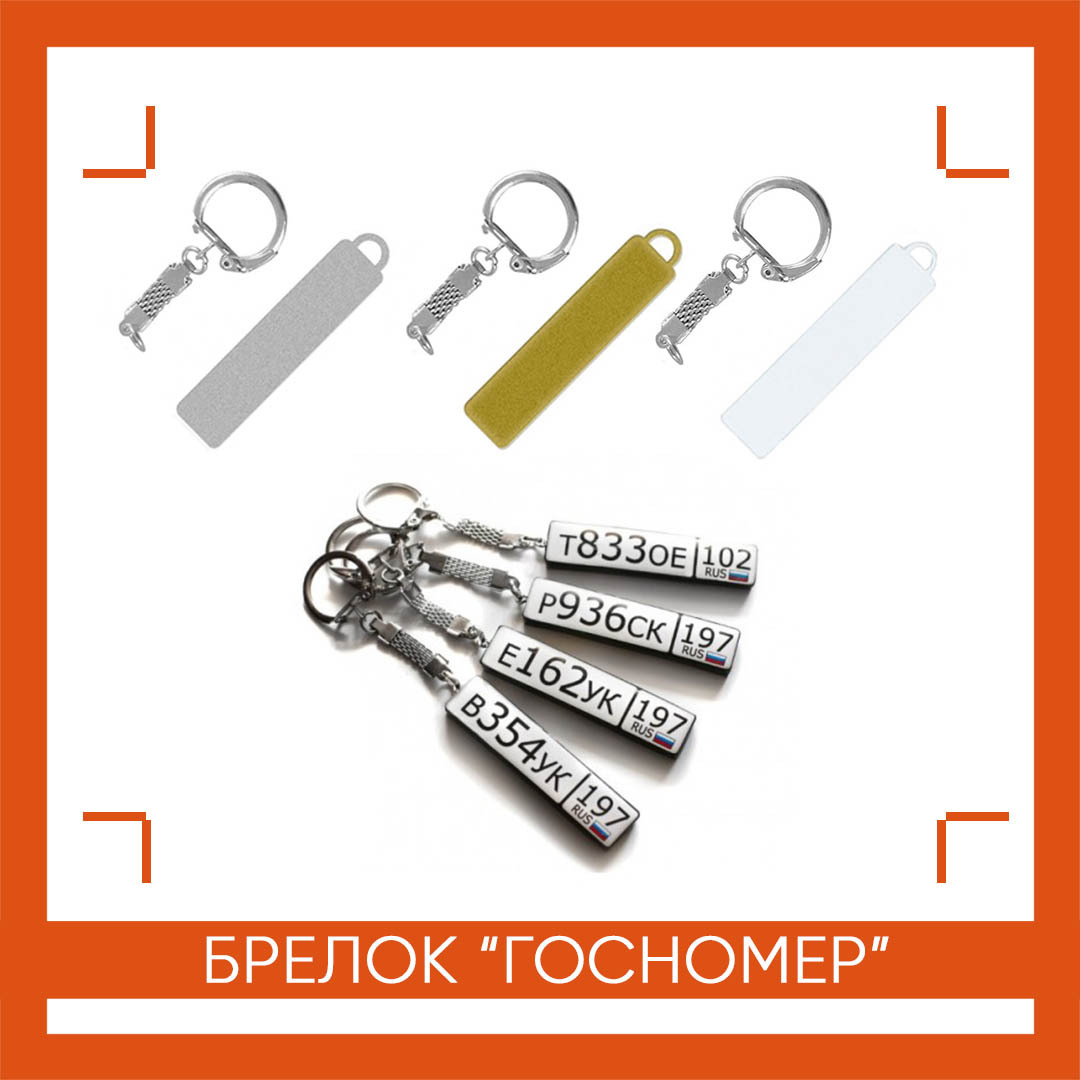 Популярный брелок в виде гос.номера автомобиля. С одной стороны наносится номер, с обратной- марка машины, либо имя владельца. Два вида: -с линзами (металлический брелок, наклейка, силиконовые линзы) -без линз (металлический брелок, долговечная печать методом сублимации)