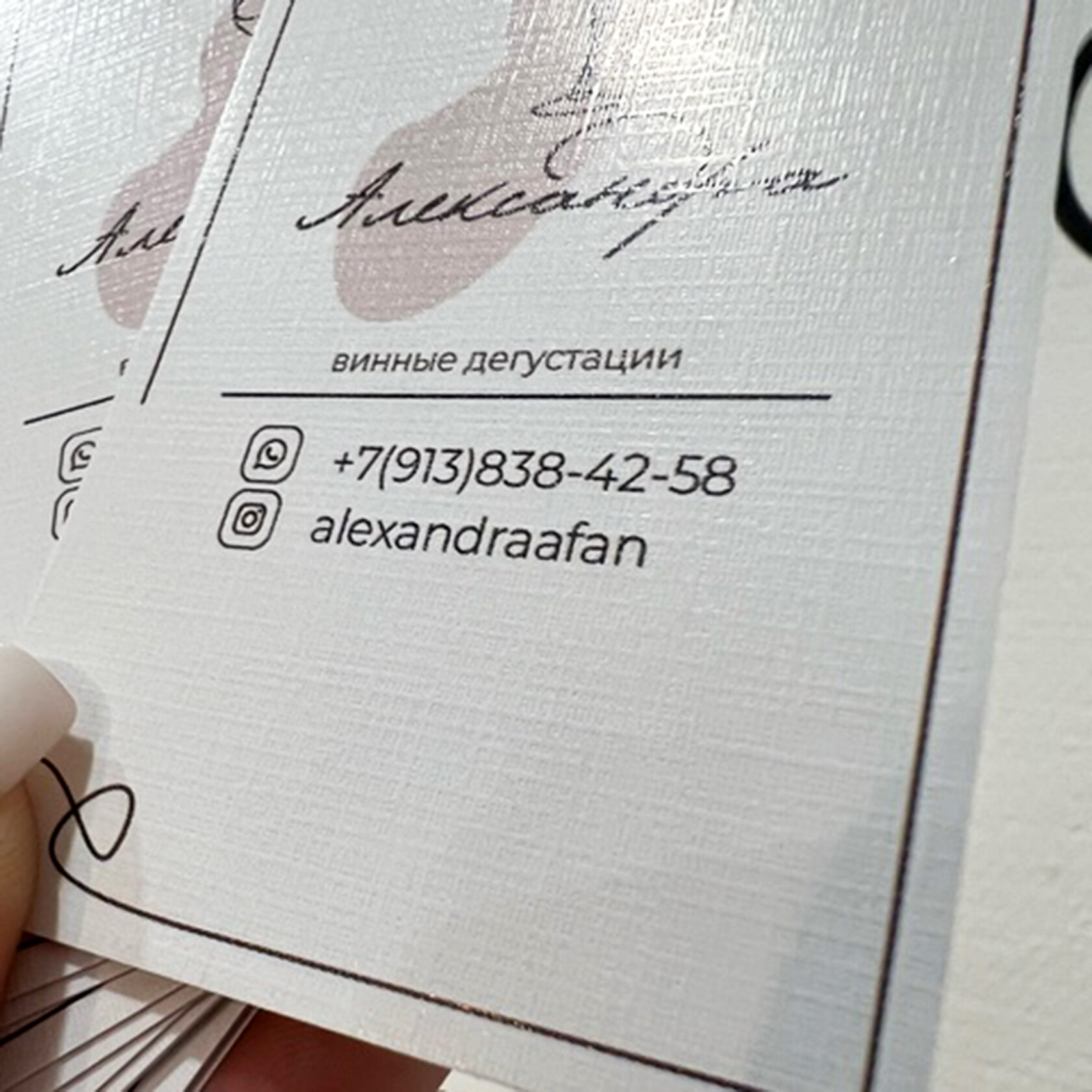 Текстурные визитки. Лён двухстороннего тиснения 300 гр. Срок печати 5 рабочих дней Тираж от 1000 шт. Возможность изготовления по вашему макету, либо разработка индивидуального размера.